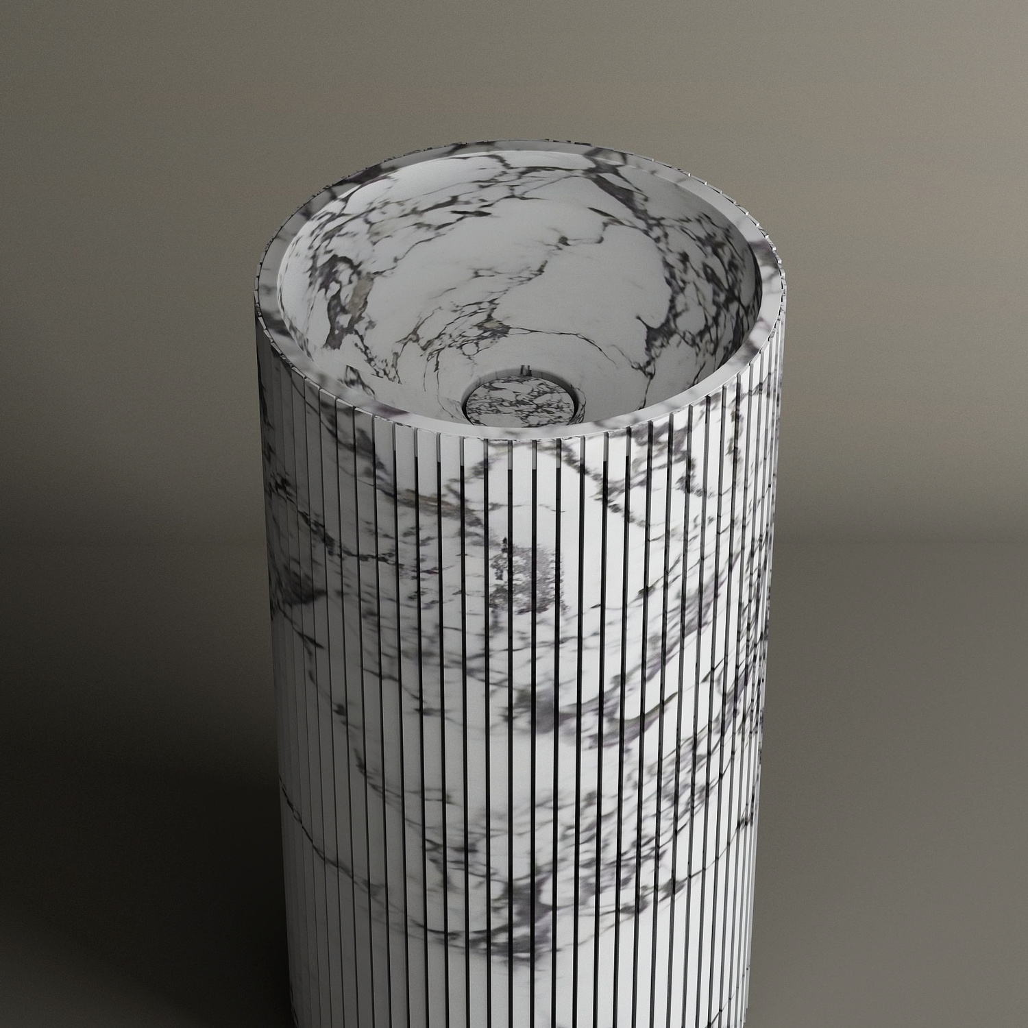 Calacatta Round Fluted Marble Pedestal Vanity Sink