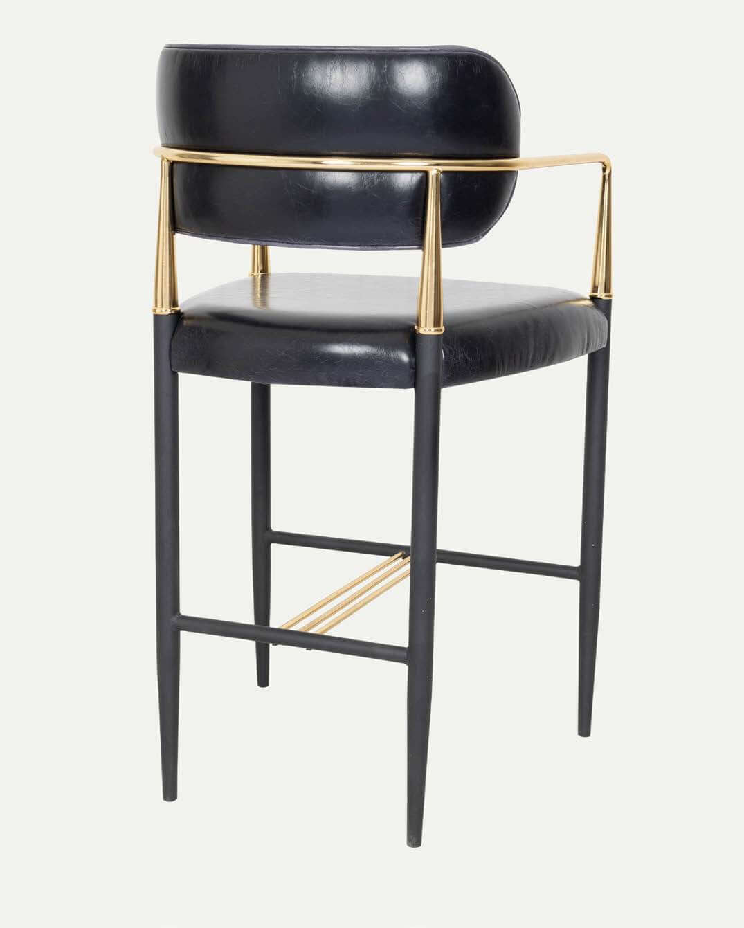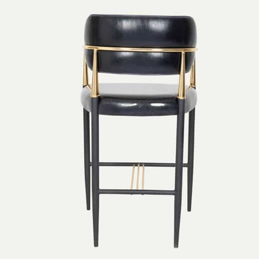 Indulge in the epitome of luxury and elegance with the Lux Royale Bar Stool. This sophisticated stool is crafted with a striking combination of black leather and gleaming gold accents, designed to bring a touch of opulence to any bar or high table setting. The stool features a sturdy frame with a sleek black finish, complemented by a plush, padded seat and backrest upholstered in high-quality black leather. The gold-toned armrests and footrest add a glamorous flair while ensuring maximum comfort and support.