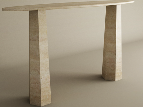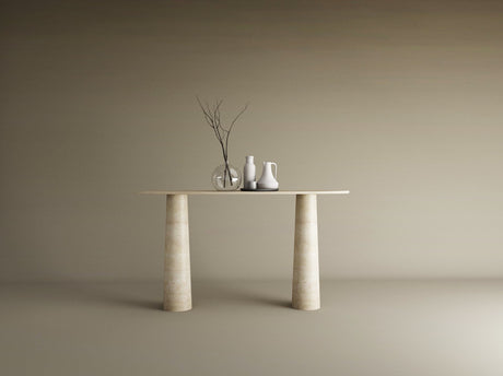 Regular price Β£1,12100Unit price /UnavailableEllips Travertine Console Table with Sloped Pedestal Base β Natural Stone Base