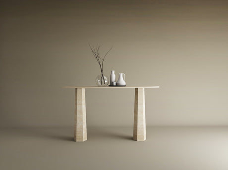 Regular price Β£1,19000Unit price /UnavailableEllips Travertine Console Table with Hexagonal Pedestal Base β Organic Stone Base