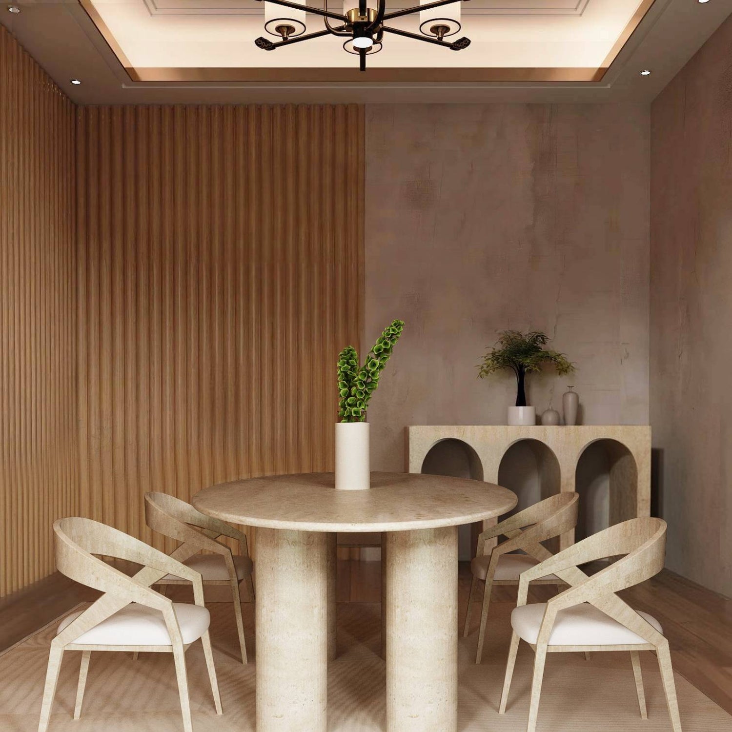 We understand that choosing a travertine dining table is both a creative and financial investment. Each travertine dining table is made to order, shaped in your preferred stone, scale, and proportion. From the calm warmth of travertine to the striking veining of Calacatta Viola, every piece is built to last and made uniquely yours.
