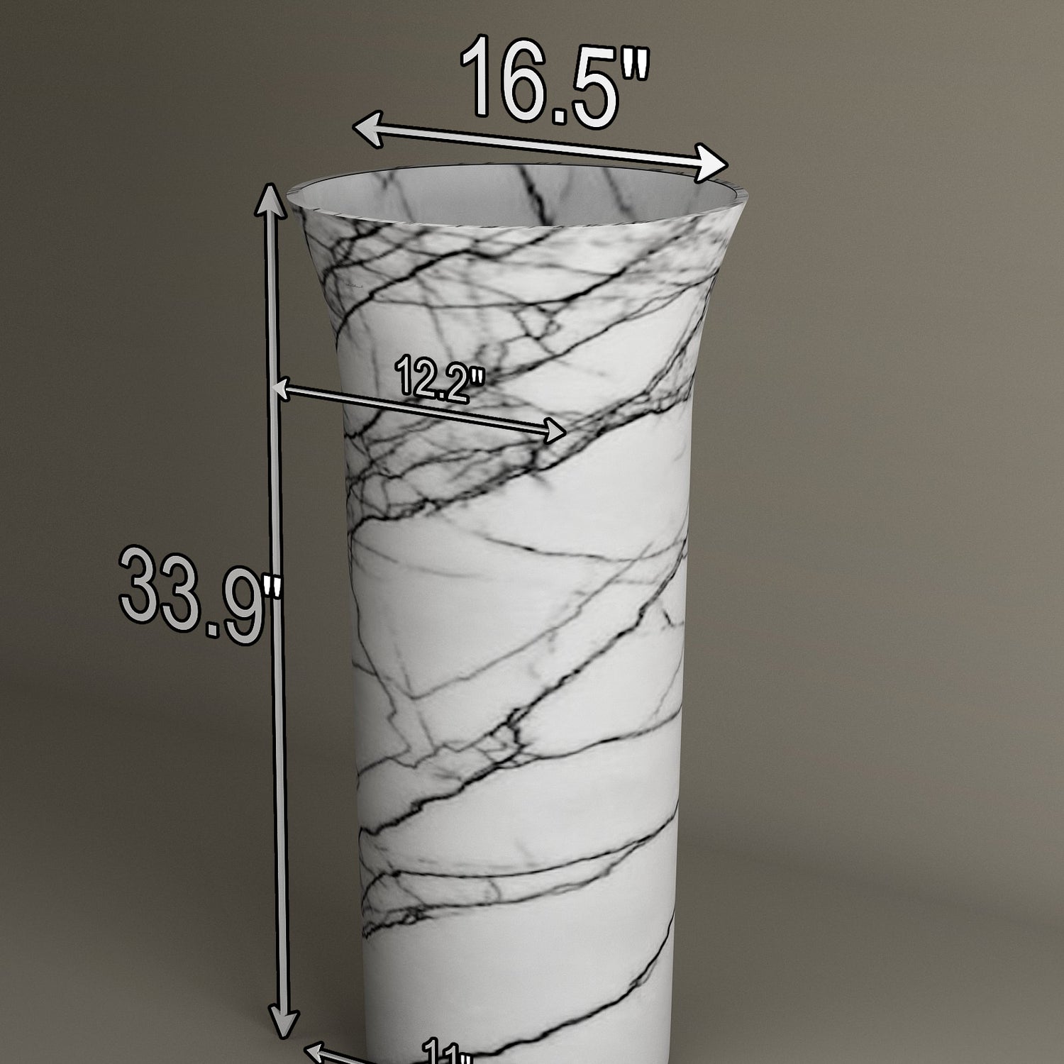 This sculptural vanity stands at 33.9" (860 mm) in height, with a 16.5" (420 mm) diameter at the rim that tapers gracefully to an 11" (280 mm) base. The inner basin measures 12.2" (310 mm) across, creating a refined balance between elegance and practicality.