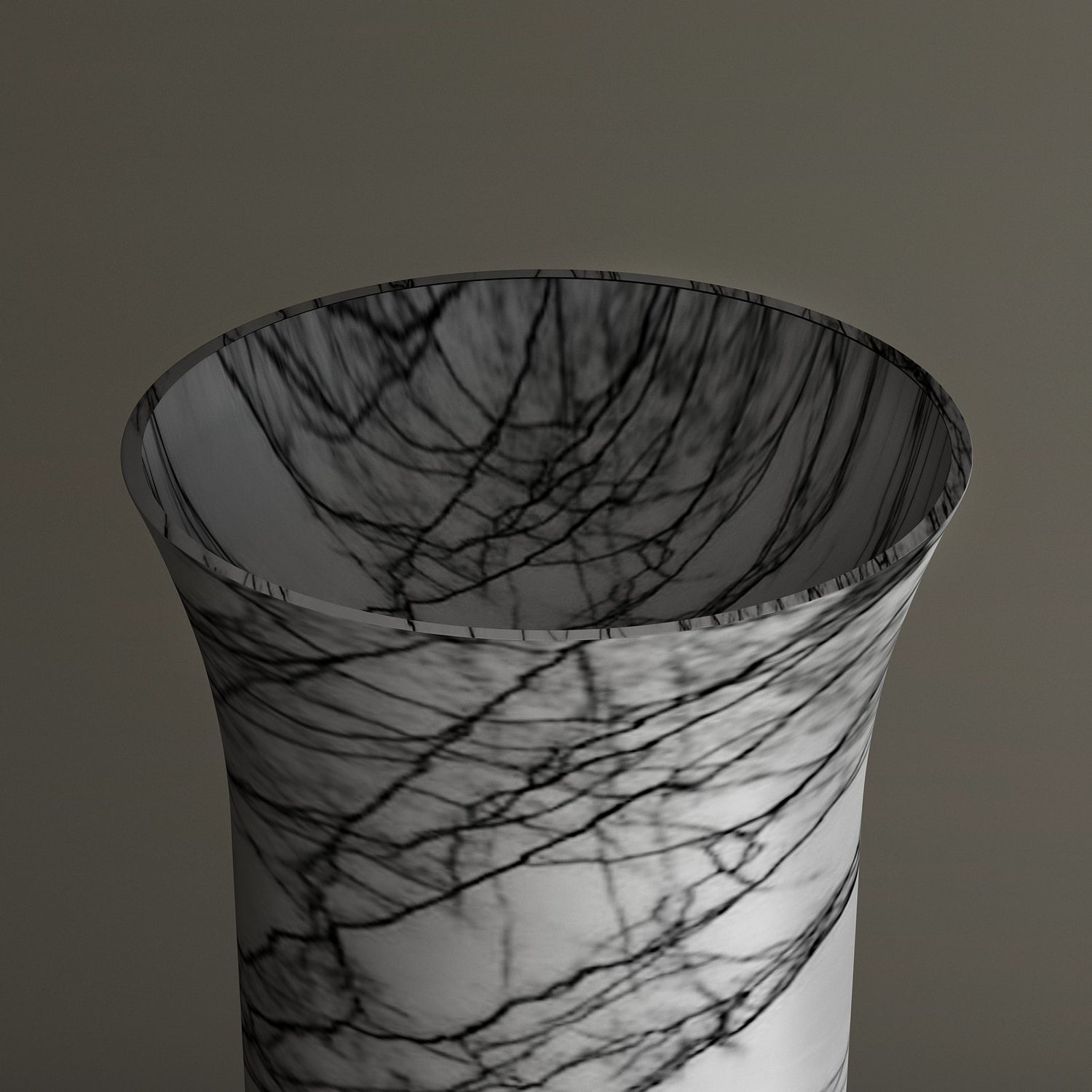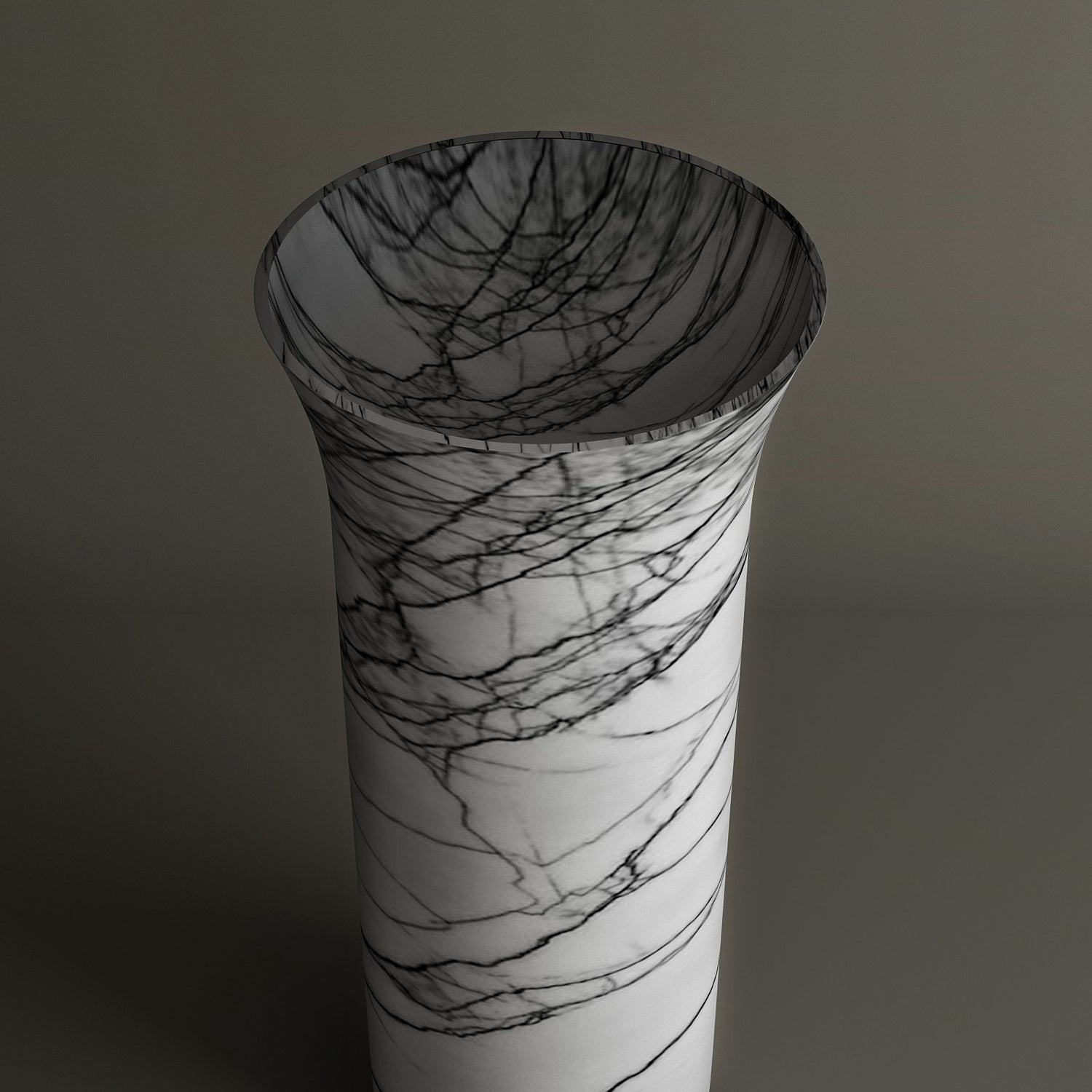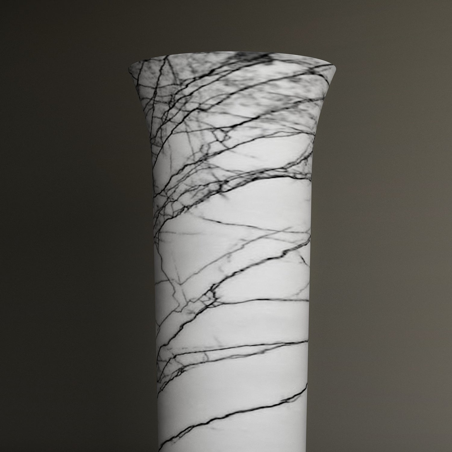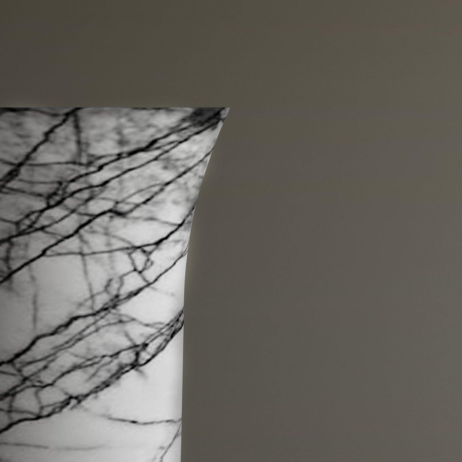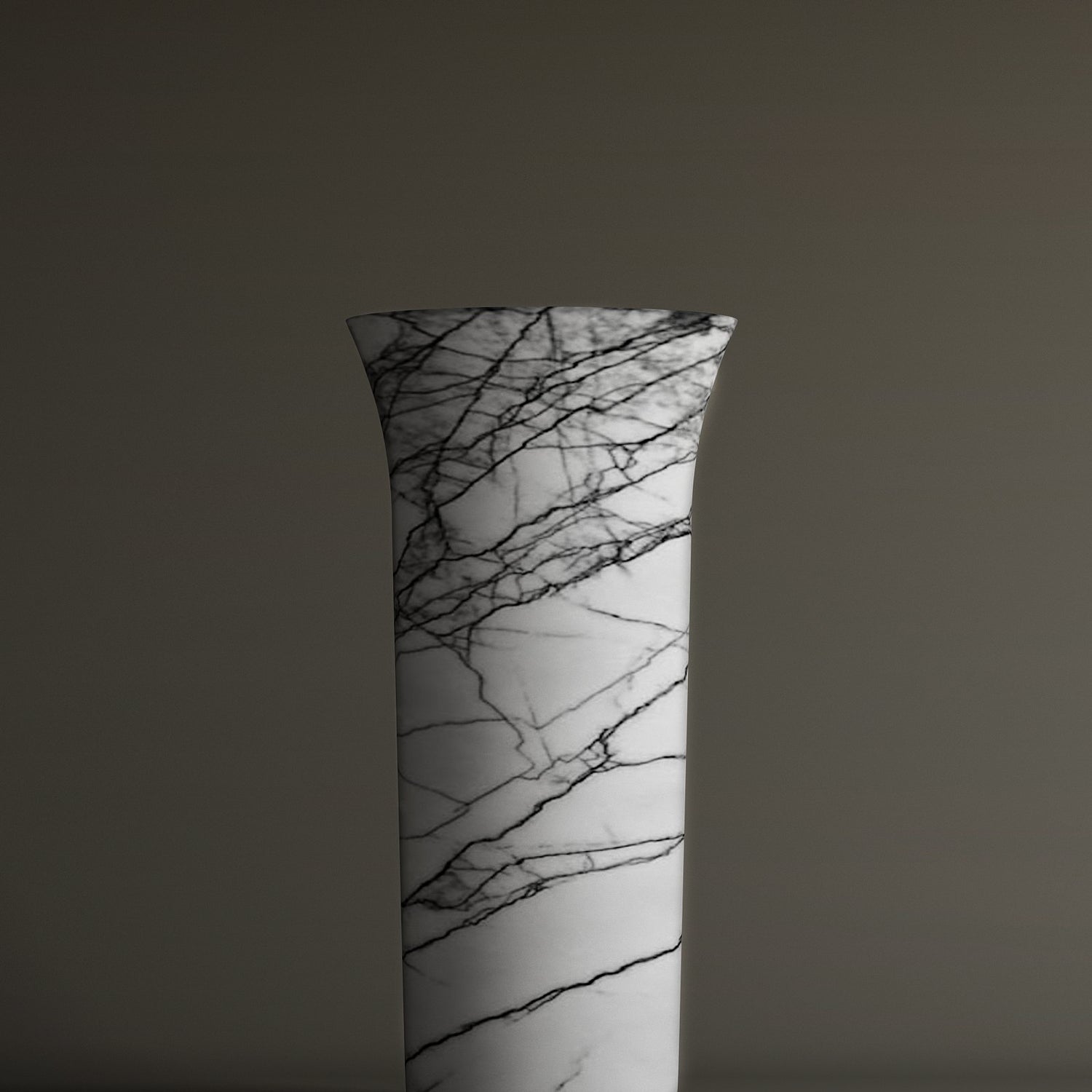 Lilac marble carved into a bold cylinder, showcasing dramatic veining in every angle. Designed as a conversation piece for interiors that embrace artistry and daring design.