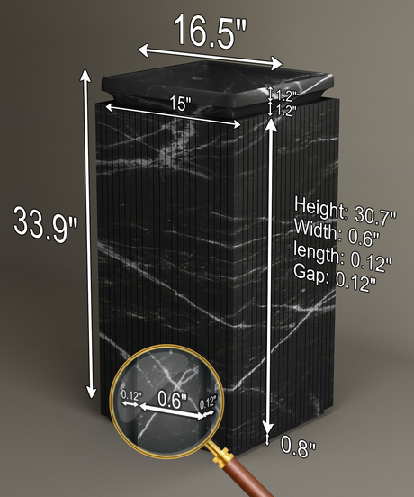 Nero Marquina Square Fluted Marble Pedestal Vanity Sink