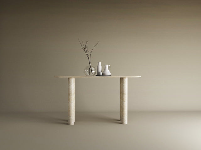 Ovale Travertine Console Table with Cylindrical Base – Pure Travertine Stone Base