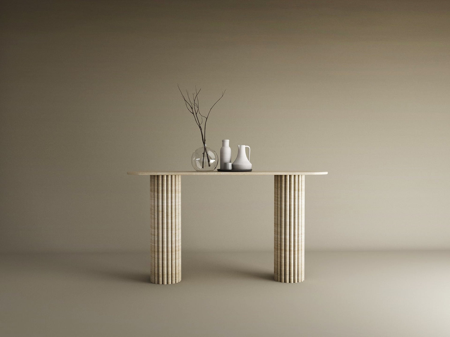 Ovale Travertine Console Table with Vertical Groove Base – Organic Stone Base