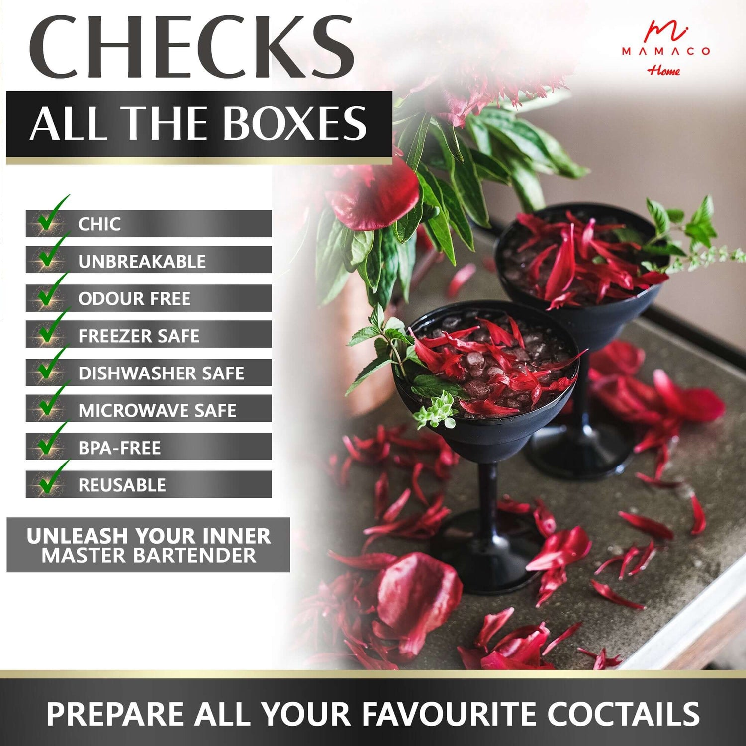 Unbreakable Margarita Glasses- 14oz Large Margarita Glass Kit - Elegant Gift Box - Reusable Giant Indoor, Outdoor Drinkware for Tequila, Martini, Cocktails BLACK
