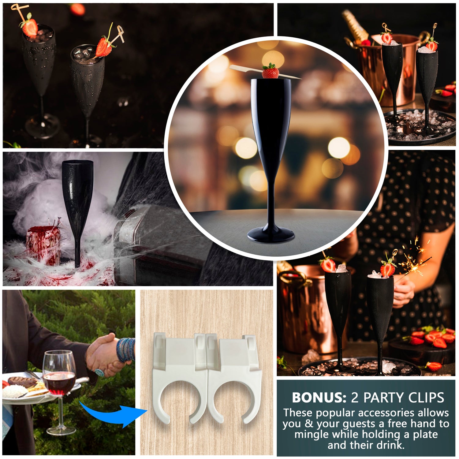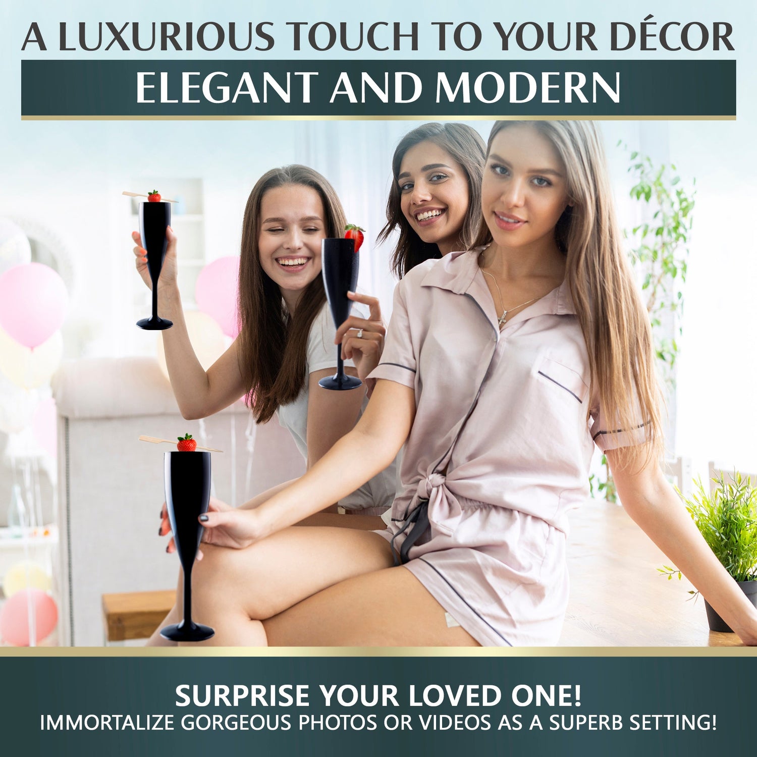 Indulge in the sophistication of **crystal-clear champagne flutes** without the fragility of glass. Our unbreakable black champagne flutes are crafted from premium **polycarbonate**, offering a sleek, elegant, and virtually indestructible alternative to traditional glassware. Whether you're celebrating a wedding, hosting an upscale event, or enjoying a casual toast at home, these **reusable, BPA-free champagne glasses** bring modern luxury to any occasion.