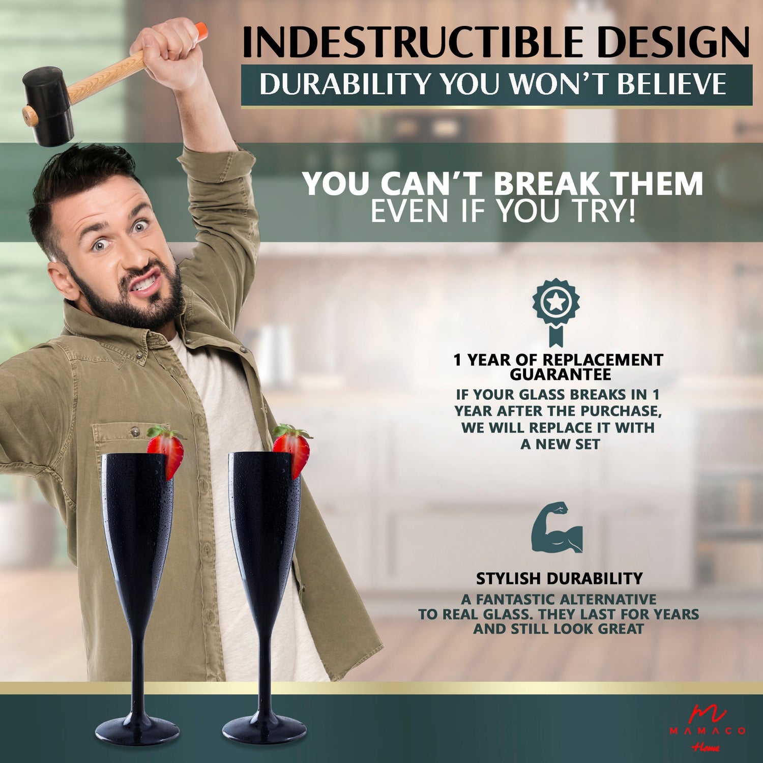 These **unbreakable black champagne flutes** are the perfect companion for a variety of settings: