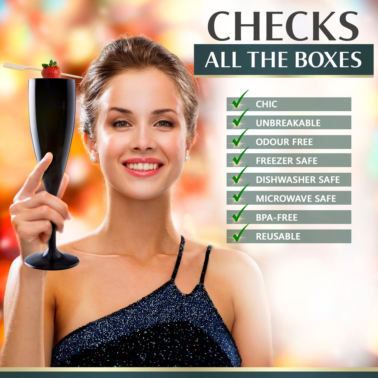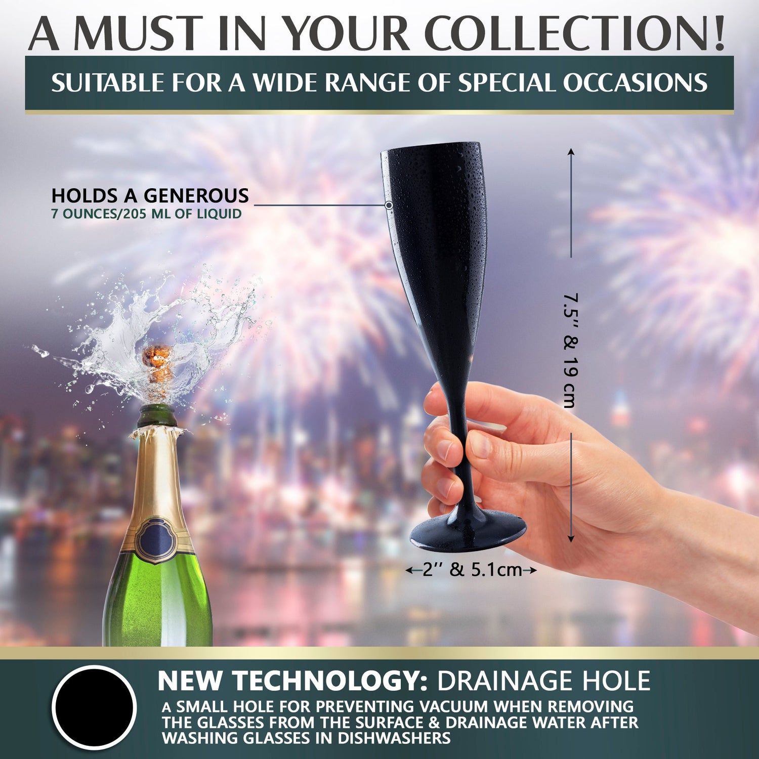 Unbreakable Black Champagne Flutes – Elegant Polycarbonate Glasses