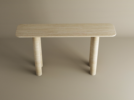 Rectangular Travertine Console Table with Vertical Groove Base β Organic Stone Base
