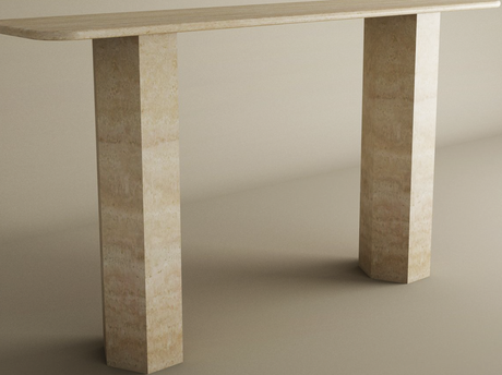 Regular price Β£1,12100Unit price /UnavailableRectangular Travertine Console Table with Sloped Pedestal Base β Natural Stone Base