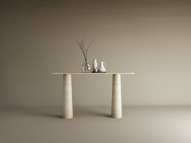 Rectangular Travertine Console Table with Conical Pedestal Base – Organic Travertine Stone Base