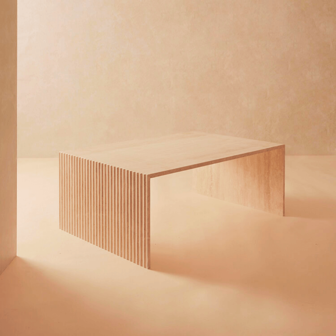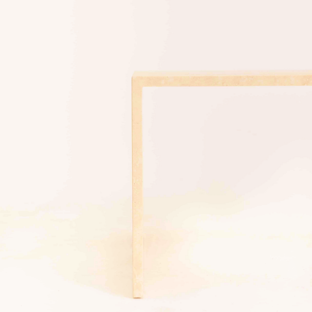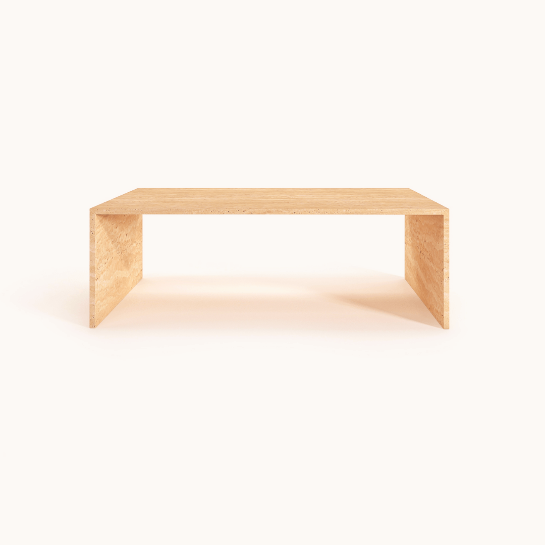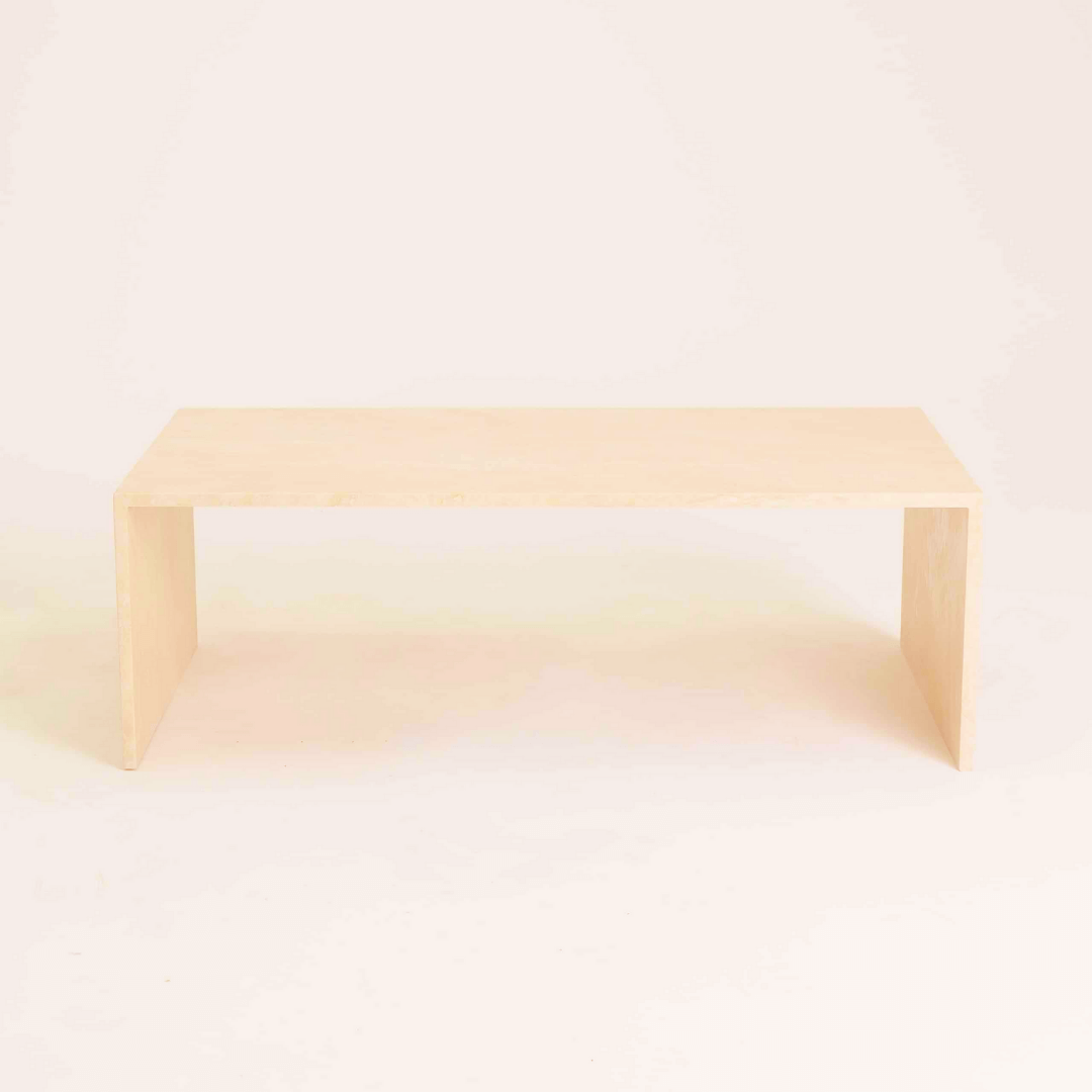 Discover the epitome of modern elegance with our Travertine Coffee Table, designed to enrich your living space with its minimalist charm and timeless beauty. Crafted from high-quality travertine stone, this table presents a smooth, polished surface complemented by a robust, geometric base that not only provides stability but also adds a sculptural element to any room.