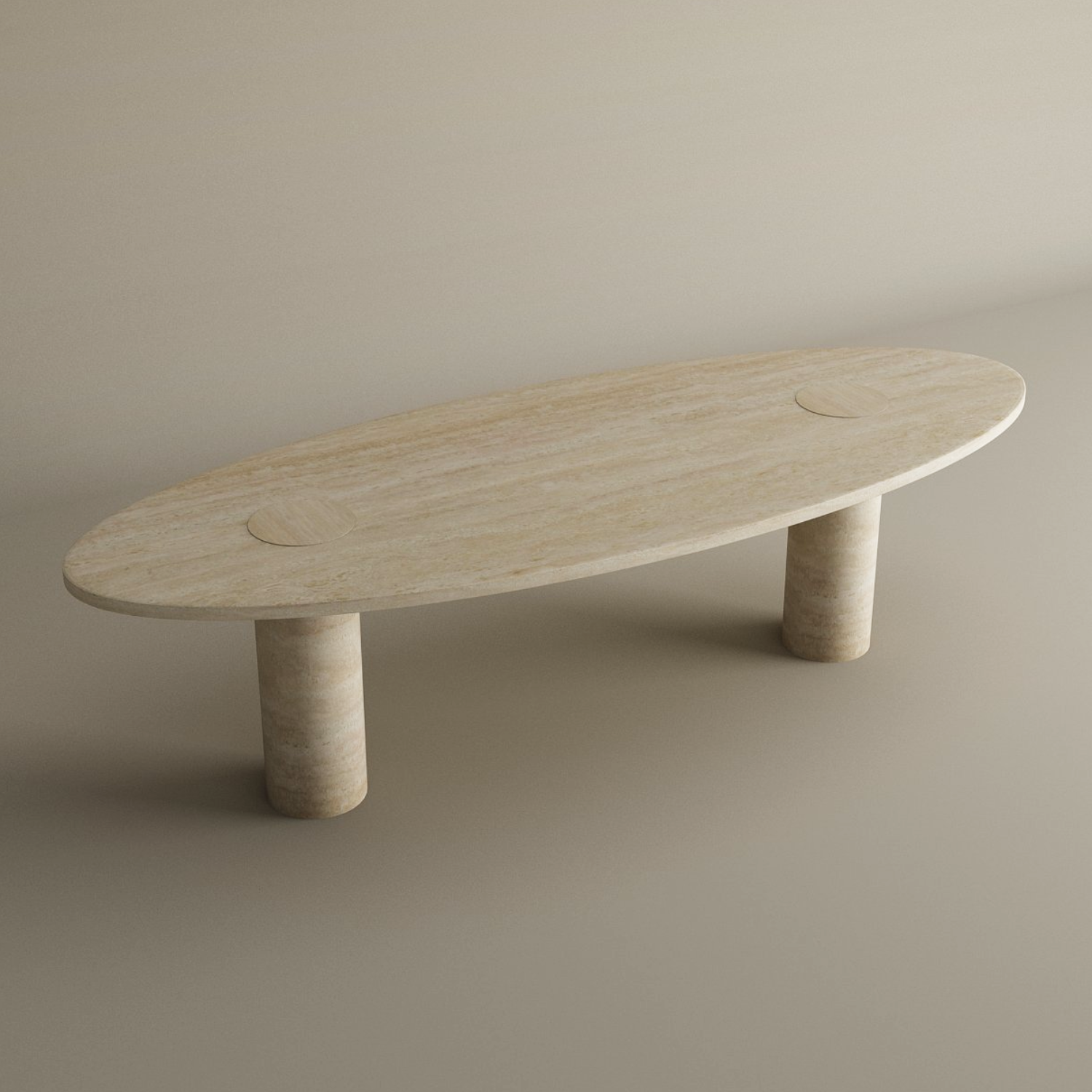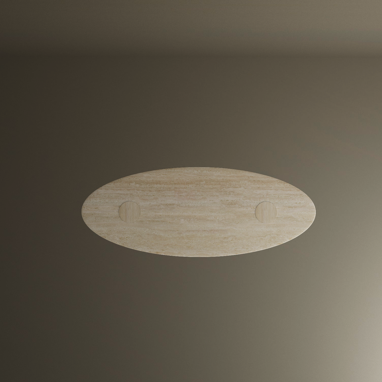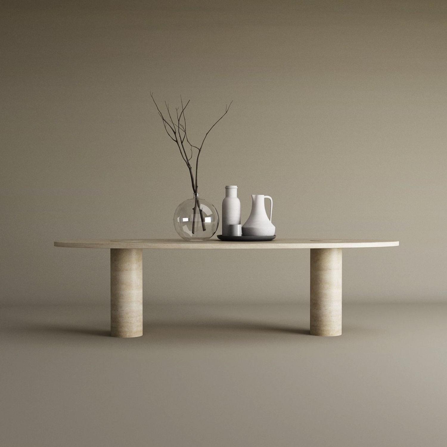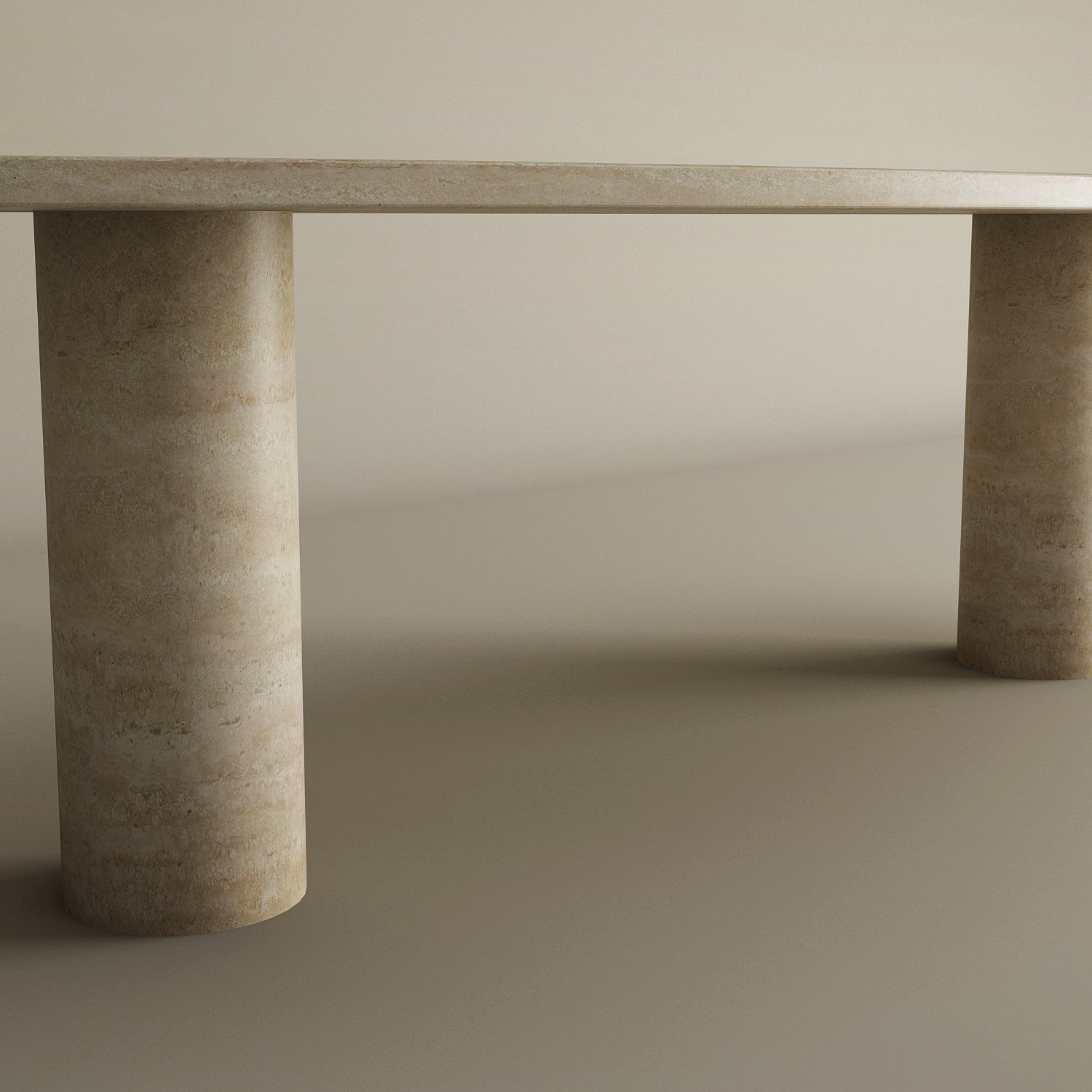 This ellipse travertine coffee table captures the gentle beauty of real stone in a softly curved form, grounded by a solid cylindrical base. Measuring 20 x 51 inches (50 x 130 cm), it’s designed to invite calm and quiet conversations. Each tabletop is unique, with natural veining that speaks of the earth’s artistry—crafted to last and become a beloved part of your home’s story for generations.