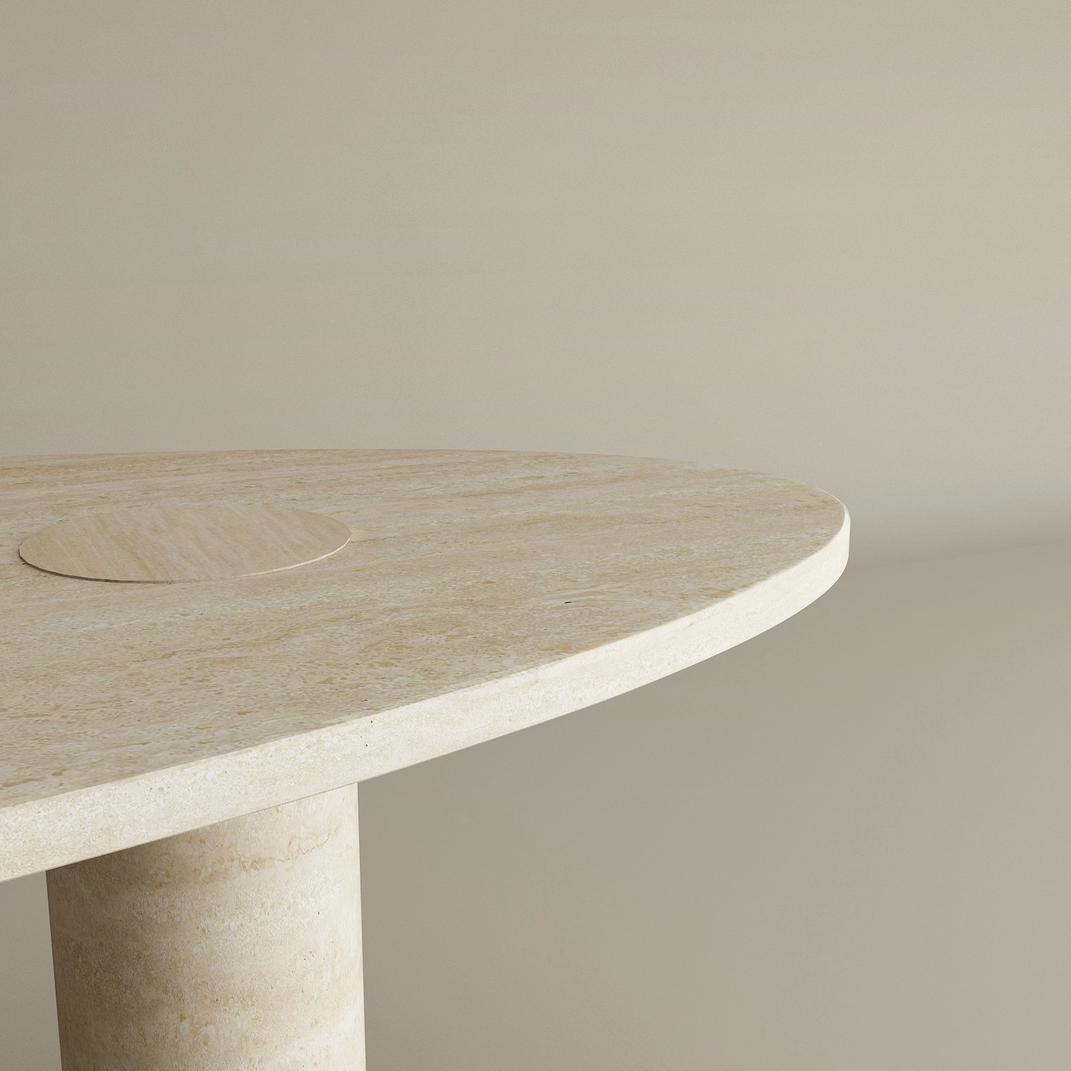 Ellipse Travertine Coffee Table with Solid Cylindrical Base
