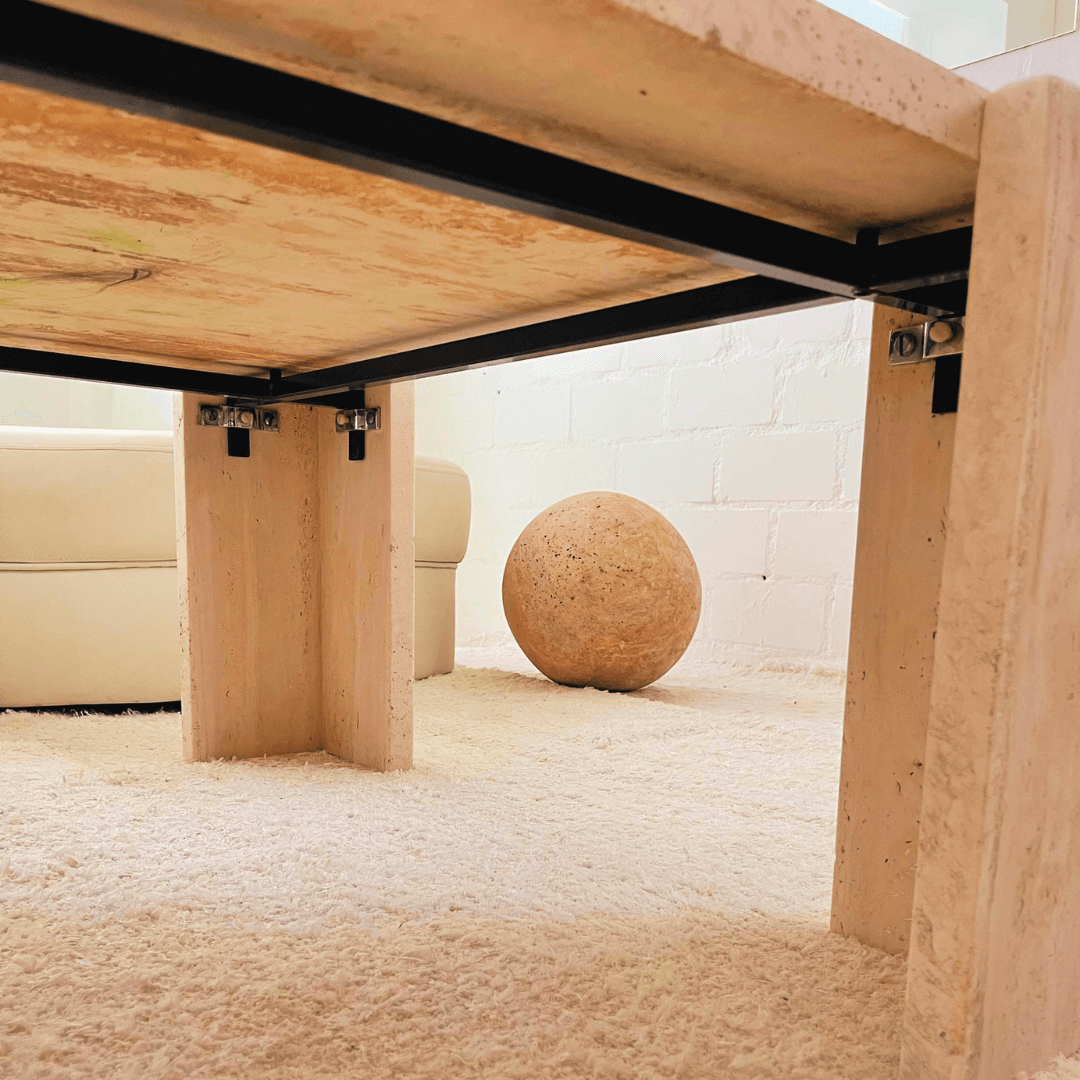 Step into a world of refined aesthetics with our Modern Travertine Coffee Table. Crafted from the finest travertine, this table is a testament to enduring beauty and robust design. Featuring clean lines and substantial, rectangular support legs, it effortlessly blends functionality with a sleek, contemporary look.