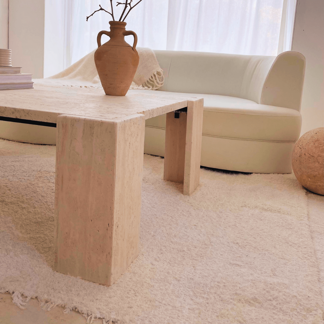 Modern Rustic Travertine Coffee Table – Perfectly Balanced Between Raw Texture & Refined Form