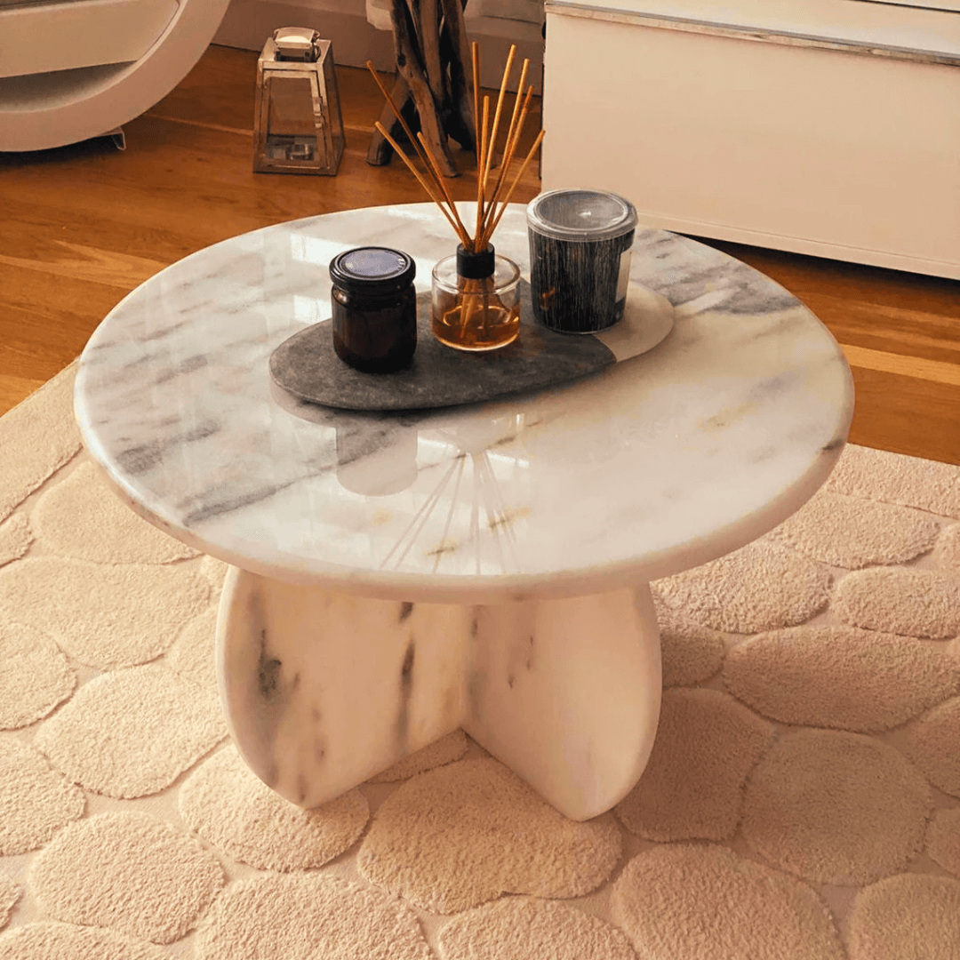• Crafted from a single block of organic stone, each table showcases unique textures and patterns, ensuring no two pieces are alike.