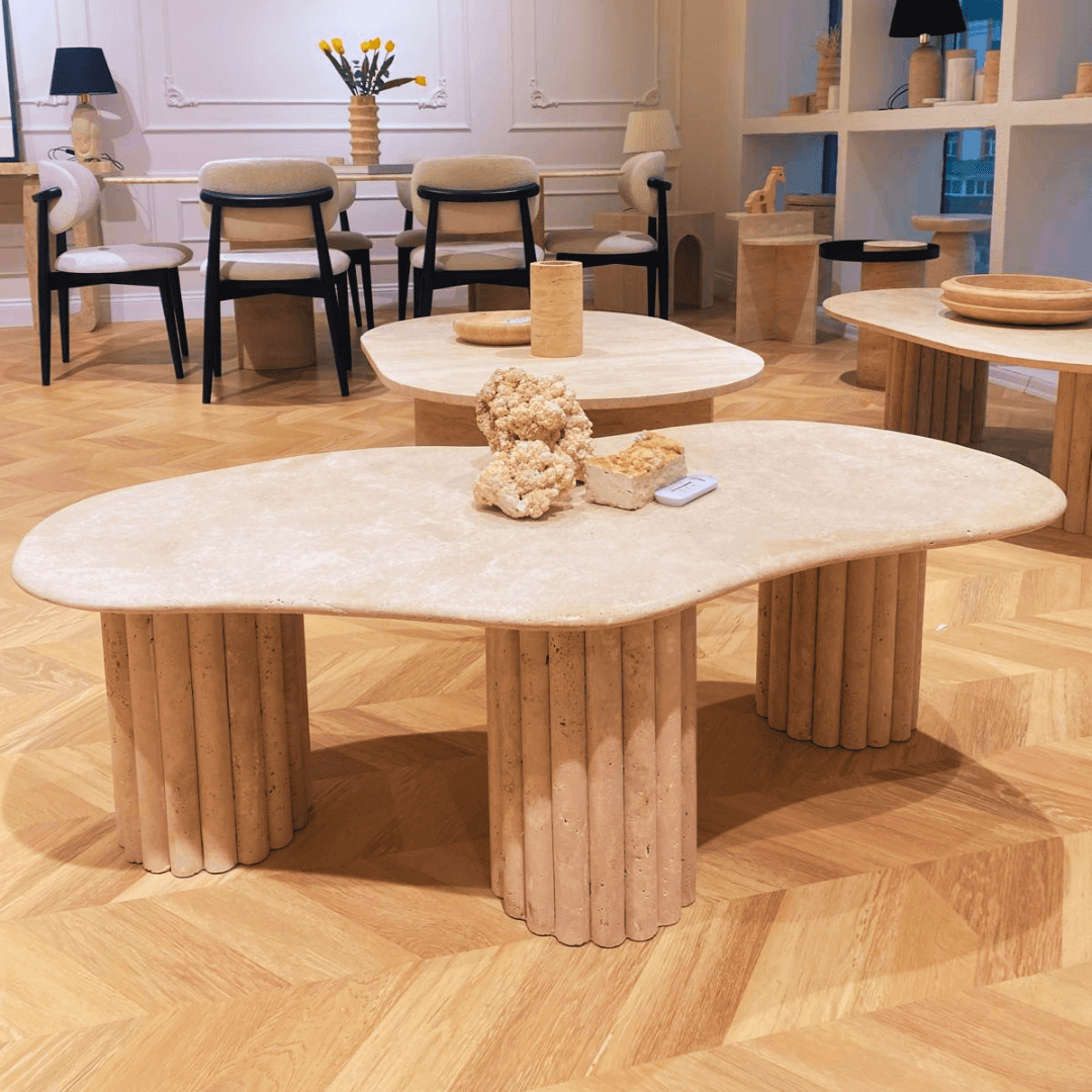 Terra Solace Travertine Coffee Table – Neutral-Toned Natural Stone Table with a Luxe Feel