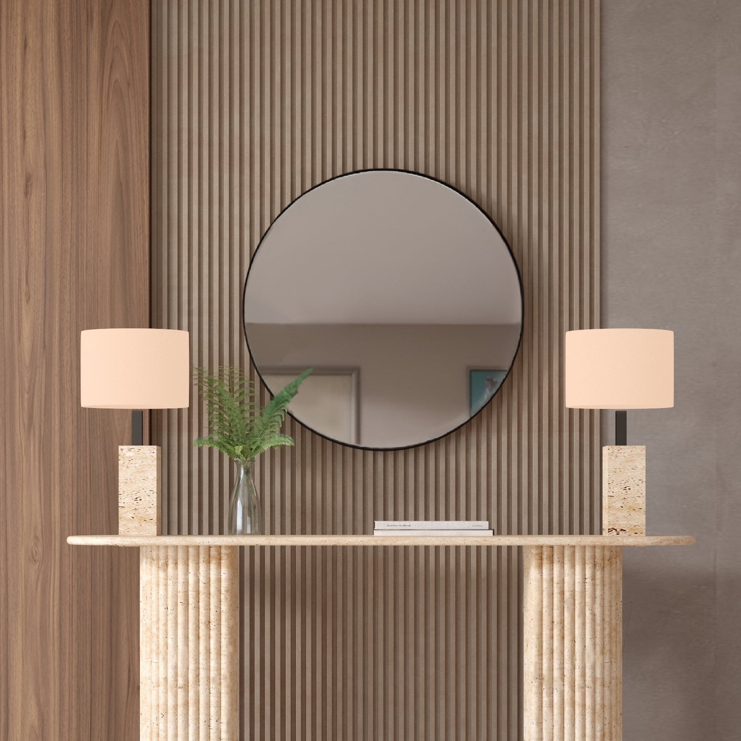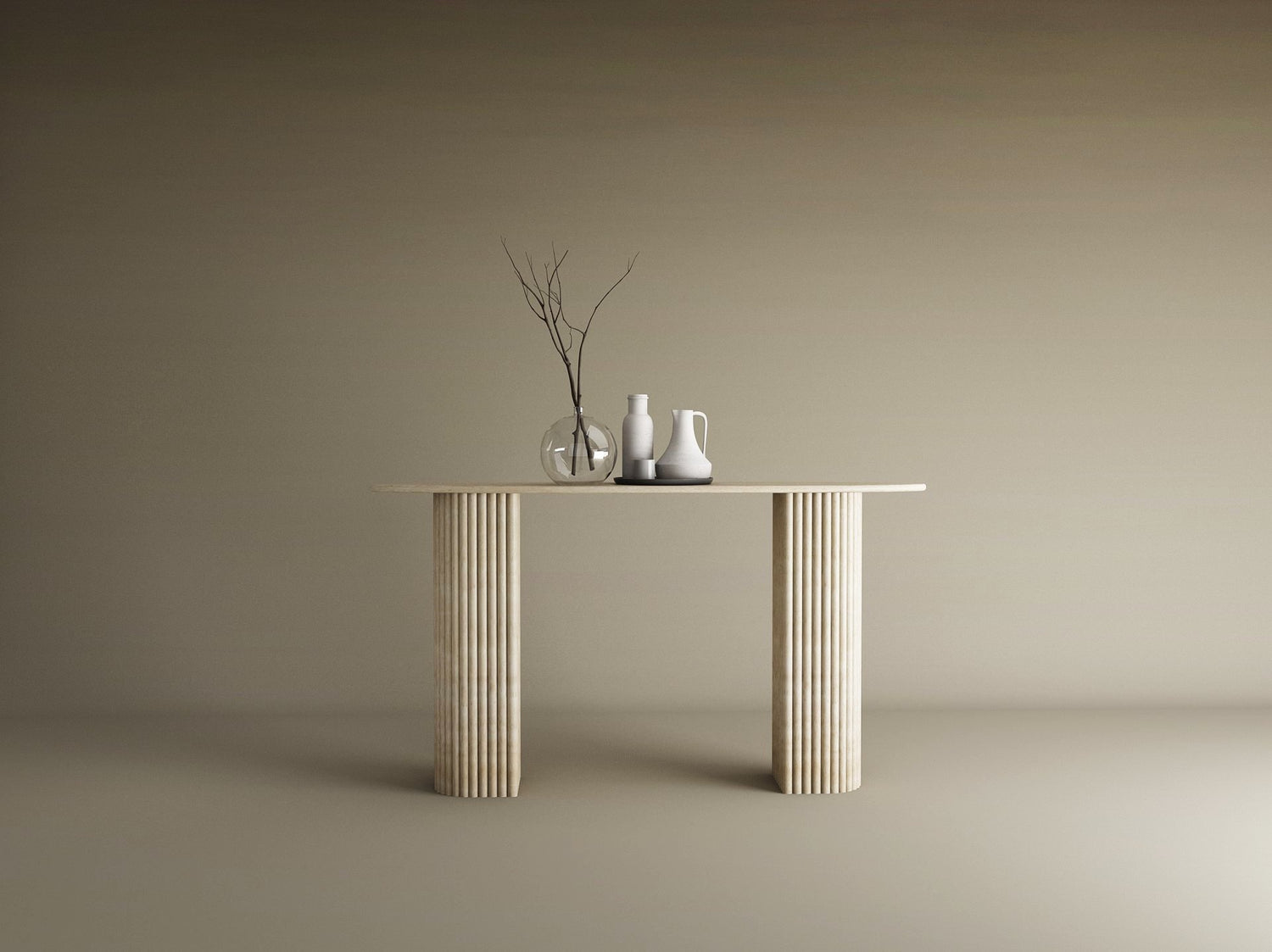 Ellips Travertine Console Table with Fluted Round Base – Solid Travertine Stone Base