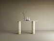 Ellips Travertine Console Table with Smooth Cylinder Base – Pure Travertine Stone Base