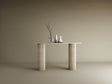 Ellips Travertine Console Table with Vertical Groove Base – Organic Stone Base