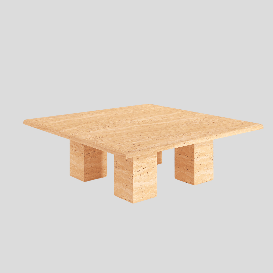 This coffee table captures the essence of modern artistry with its robust, minimalistic structure and a freeform design that challenges conventional styles. Crafted from high-quality travertine, the table features a unique stone finish that varies from piece to piece, ensuring that no two tables are alike.